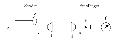 Anstelle des dargestellten Empfängers kann auch ein Empfangsdipol mit HF-Diode verwendet werden: