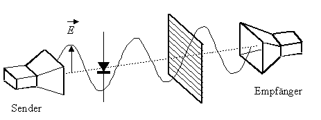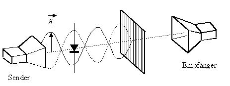 Empfänger 1 reagiert. Die Mikrowellenstrahlung passiert das Gitter ungestört. |
