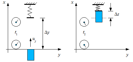Da in S' die gleiche Stauchung der Feder wie in S beobachtet wird, muss die Impulskomponente py' , die in S' ermittelt wird, mit der Impulskomponente in S übereinstimmen. Setzt man einfach