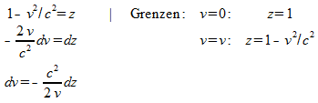 4. Ein Elementarteilchen soll so beschleunigt werden, dass seine relativistische Masse das doppelte, zehnfache, hundertfache seiner Ruhemasse beträgt. Bestimmen Sie die dazu nötigen Geschwindigkeiten v/c.