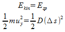 Bei der geringen Geschwindigkeit kann nicht-relativistisch gerechnet werden. Die kinetische Energie des Fahrzeugs wird in Spannenergie der Feder umgewandelt: