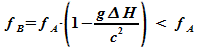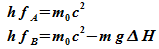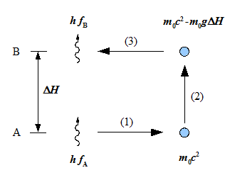 Ein bei A befindliches Photon mit Das Teilchen überwindet im Schwerefeld die Höhe DH, wobei seine Energie abnimmt auf
