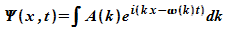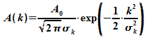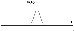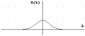 Dabei ist A(k) die Verteilungsfunktion der Wellenzahlen k. Bei einem Gauß-Paket ist diese Verteilungsfunktion gegeben durch