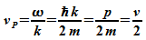 Die Gruppengeschwindigkeit des Wellenpaketes stimmt also mit der Teilchengeschwindigkeit überein. Das war auch zu erwarten, denn vG ist nichts anderes als die Geschwindigkeit, mit der sich die Einhüllende des Pakets ausbreitet und damit auch die Aufenthaltswahrscheinlichkeitsdichte des Teilchens. Die Phasengeschwindigkeit vP der einzelnen Wellen stimmt dagegen nicht mit der Teilchengeschwindigkeit überein: