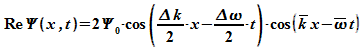 zwei harmonischen Wellen zusammengesetzte Wellenpaket ist zur