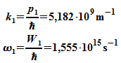 a) Berechnen Sie Impuls p1, Energie W1, Wellenzahl k1 und Kreisfrequenz w1.