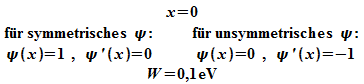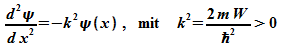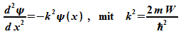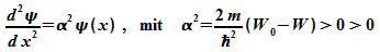 Für ein Teilchen in diesem Potentialtopf ist W < W0. Die Schrödinger-Gleichung lautet innen: