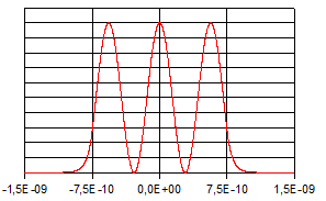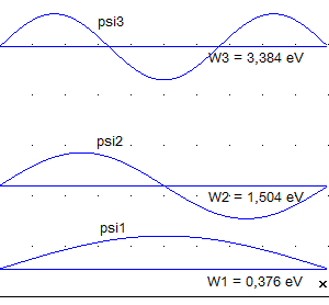 Für ein Elektron in einem linearen Potentialtopf der Breite L = 1 nm sind die ersten drei Eigenwerte der Energie: