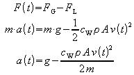 Unter der Wirkung der Gewichtskraft wächst die Geschwindigkeit v des Körpers. Mit der Geschwindigkeit v nimmt aber auch der Luftwiderstand FL zu, der der beschleunigenden Kraft entgegengerichtet ist. Die resultierende Kraft aus beiden ist somit:
