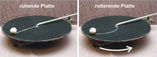 Ein Experiment zum Nachweis der Corioliskraft zeigt die folgende Abbildung.
