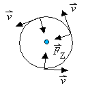 4. Die Bewegung eines Körpers auf einer Kreisbahn ist in jedem Zeitpunkt tangential zum Kreisbogen gerichtet. Der Vektor der Bahngeschwindigkeit ändert also laufend seine Richtung. Dazu ist aber eine Kraft erforderlich, die ständig zum Kreismittelpunkt gerichtet ist – die sogenannte Zentripetalkraft FZ.