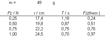 Dieser theoretische Wert der Zentripetalkraft ist mit den gemessenen Werten zu vergleichen.